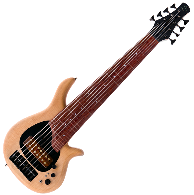 Body : Maple ,Neck : Maple ,Contruction : Through neck, Fingerboard : Padauk-with maple slot markers (fretless), Scale Leght : 34 inch - Compound radius almost flat, Nut : Handmade low friction carbon fiber. Neck , Frets : 30 Fretless or Fretted 30 stainless steel, Pickup : Christoph Dolf from Germany ,, Bridge : Gotoh Bridge 2 x 4 string coupled together, Hardware : Machineheads Gotoh, Finish : Wood oil.